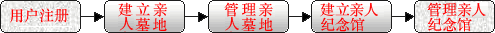 上有以下链接:① 点击"进入亲人纪念馆"可进入逝者亲人纪念馆,亲人纪念馆内存放和展示的内容有逝者亲人资料、逝者亲人相片("音容笑貌")、悼念列表等;② 点击"管理亲人纪念馆">>输入用户名和密码>>可进入墓地(碑)管理页面--这里只有注册用户才能进入,这里可对所申请的逝者亲人墓地(碑)各部分内容和资料进行全面管理,如新建墓地(碑)、定制墓碑、修改资料、上传照片等(该部分具体操作见下面说明);③悼念纪录:这里可以删除逝者亲人的一些悼念记录。操作方法是:选择"悼念记录">>在逝者亲人列表中选择要删除者的"列出悼念纪录">>点击"删除资料"即可。