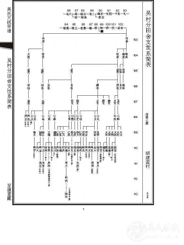 吴村分田舍支世系简表