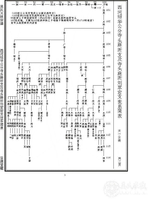 • 西河绍华公分寺头麻圻支及寺头麻圻刘家宕支世系简表 (2015-2-20)